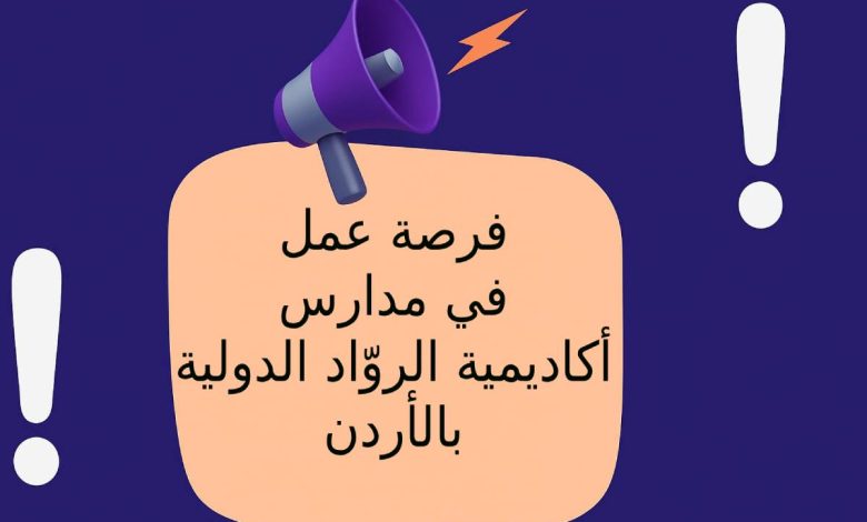 للالتحاق بفرصة عمل في مدارس أكاديمية الروّاد الدولية بالأردن  (من هنا)