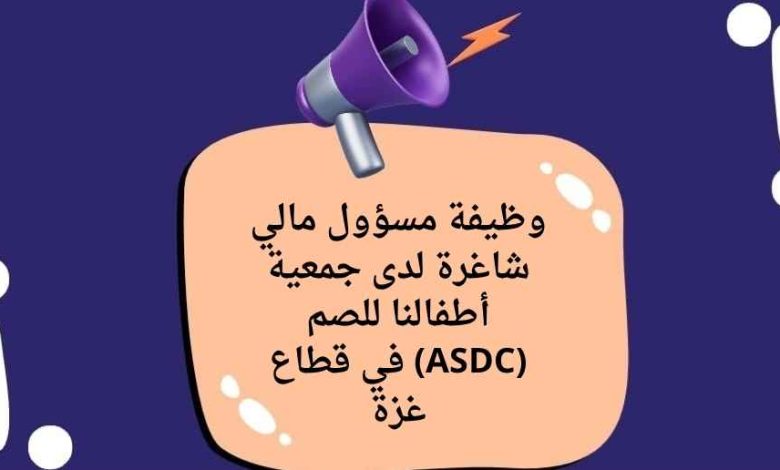 تعلن جمعية أطفالنا للصم (ASDC) عن حاجتها لتعيين مسؤول مالي من حملة البكالوريوس ذو خبرة في مجال المالية والمحاسبة، وهي منظمة غير ربحية تعمل في فلسطين بقطاع غزة.
