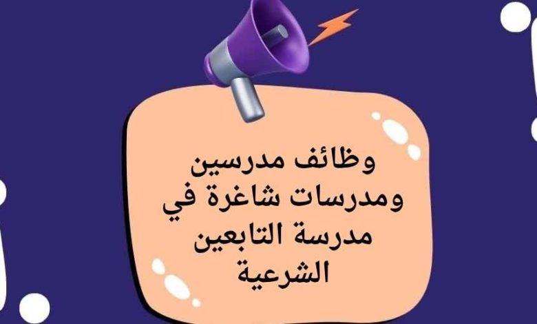 تعلن مدارس التابعين الشرعية التابعة لجمعية الصحابة لتحفيظ القرآن والعلوم الشرعية عن توفر فرص عمل شاغرة بمختلف التخصصات التعليمية في قطاع غزة.