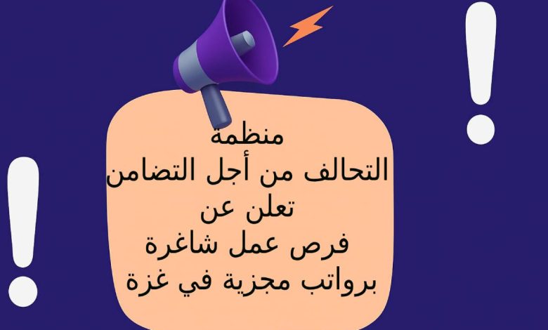 في إطار الجهود الإنسانية المستمرة لدعم العاملين في المجال الإغاثي داخل قطاع غزة، أعلنت منظمة التحالف من أجل التضامن (Alianza por la Solidaridad – ActionAid Spain) عن توفر وظيفة “مستشار/ة تدريب متقدم للعناية الذاتية” ضمن مشروع يهدف إلى تعزيز الصحة النفسية والرفاه للعاملين في الخطوط الأمامية.