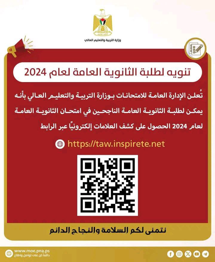 للحصول على كشف العلامات لطلبة الثانوية العامة 2024 (من هنا)