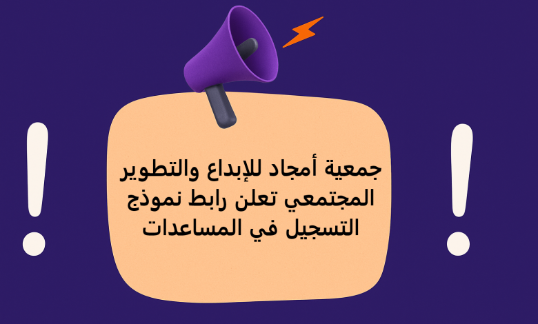 للتسجيل في مساعدات جمعية أمجاد للإبداع والتطوير المجتمعي اضغط هنا.