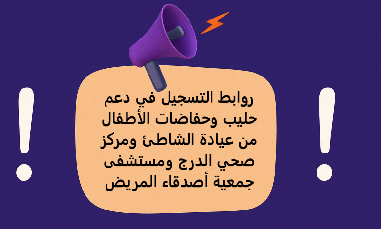 روابط التسجيل في دعم حليب وحفاضات الأطفال