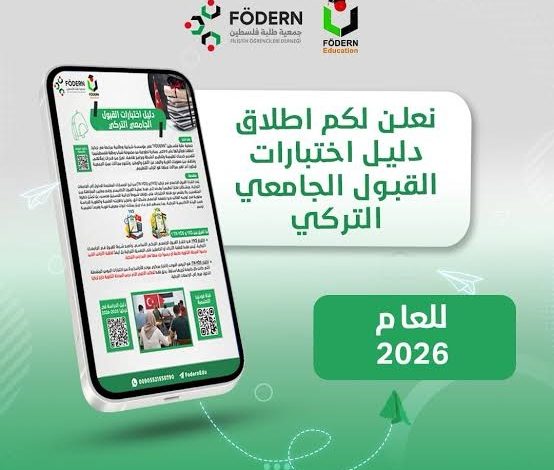 في خطوة تعكس حرصها على تمكين الطلبة الفلسطينيين ومساندتهم في مسيرتهم التعليمية أعلنت جمعية طلبة فلسطين – فوديرن عن بدء حصر بيانات الطلبة الراغبين في استكمال دراستهم الجامعية في تركيا ضمن فرص دعم أكاديمي ومنح دراسية خاصة يجري العمل عليها بالتعاون مع مؤسسات تُعنى بتأهيل الشباب الفلسطيني الواعد.